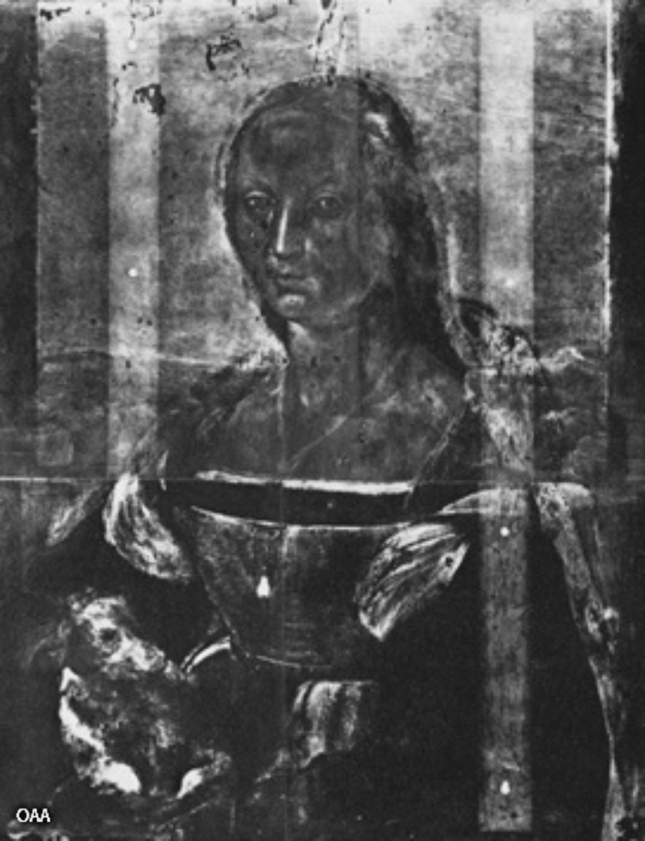 When the Carnegie Museum of Art in Pittsburgh first acquired it, they were concerned it might be a fake. But investigation by their diagnosticians and historians like Lulu Lippincott revealed that it wasn’t a fake, it was a cover up. 19th century restorer Francis Leedham had taken lots of liberties with it and doctored it for his Victorian audience. He made the woman much younger, and erased her halo so that she’d be more in lines with 19th century ideals of demure feminine beauty—which also preferred smaller hands. So he made Isabella’s massive mits more dainty too, erasing the urn in her hands in the process.