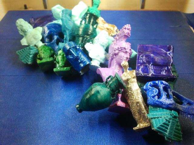 This week I went a bit excitingly over-board 3D printing some of my favorite creative commons pieces museums have submitted to Thingiverse. And then I had a bit of technicolor fun with them.