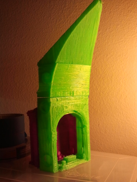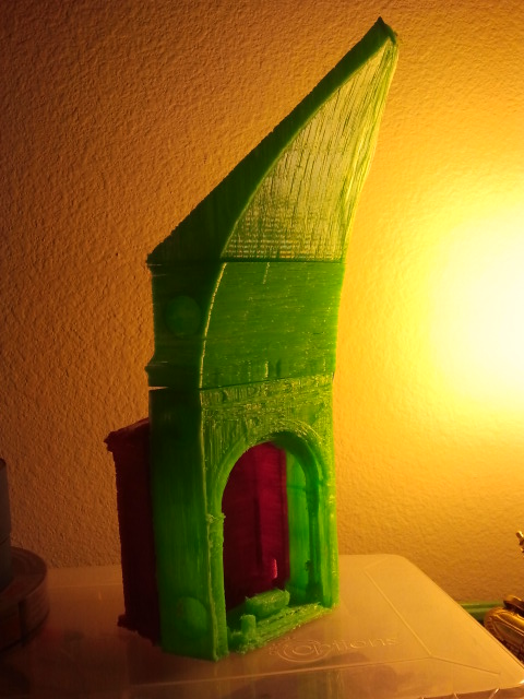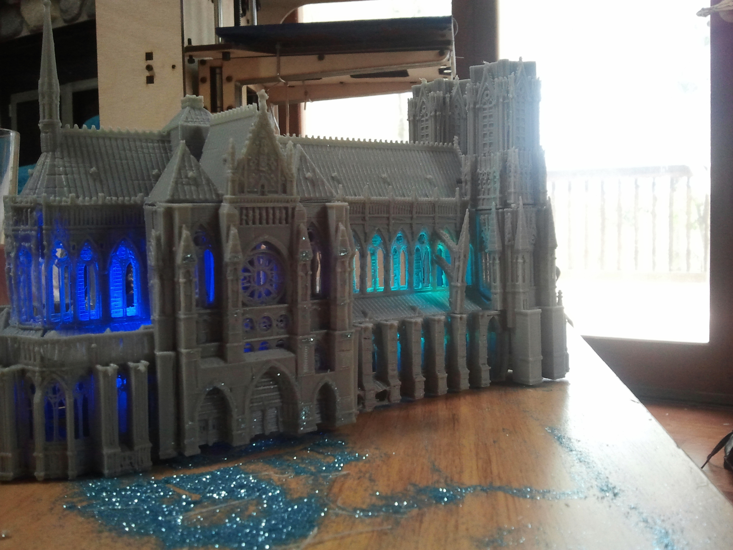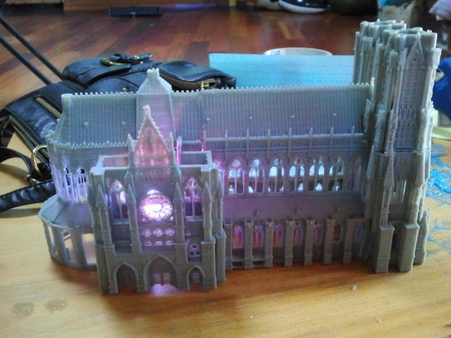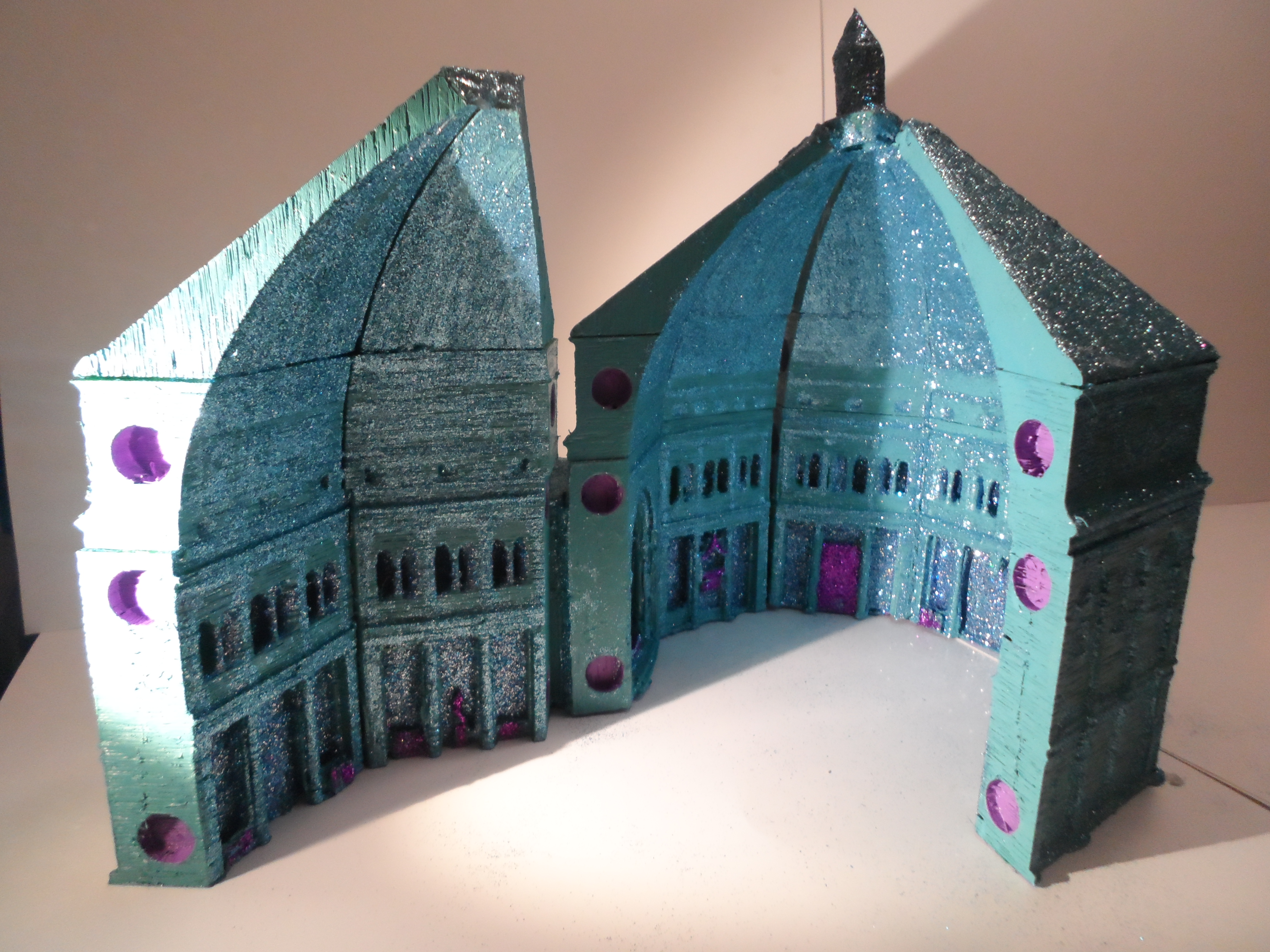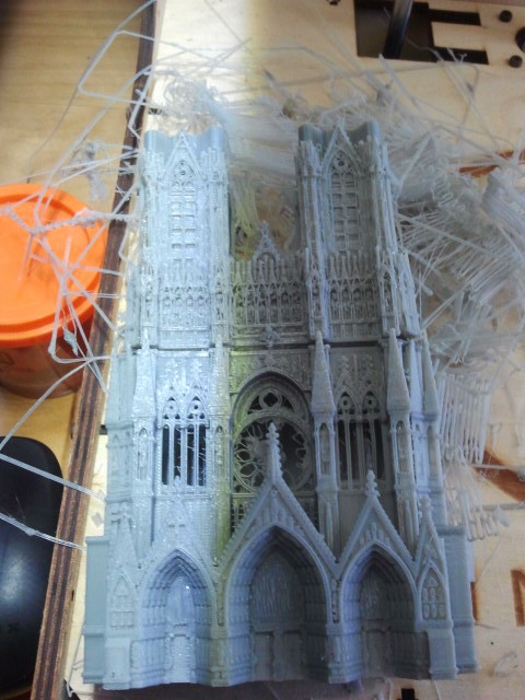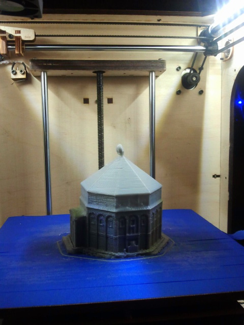 In an effort to figure out how to splice the Baptistery effectively for both 3D printing and maintaining at least a semblance of its architectural glory, I printed out this model of the Cathedral at Rheims created in CAD using real measurements for a video game (Assasin’s Creed?). Oh the wonders that can be found on Thingiverse even on this early stage in the 3D printing game. (More on our other major experiment based on Thingiverse/Sketchfab finds here).