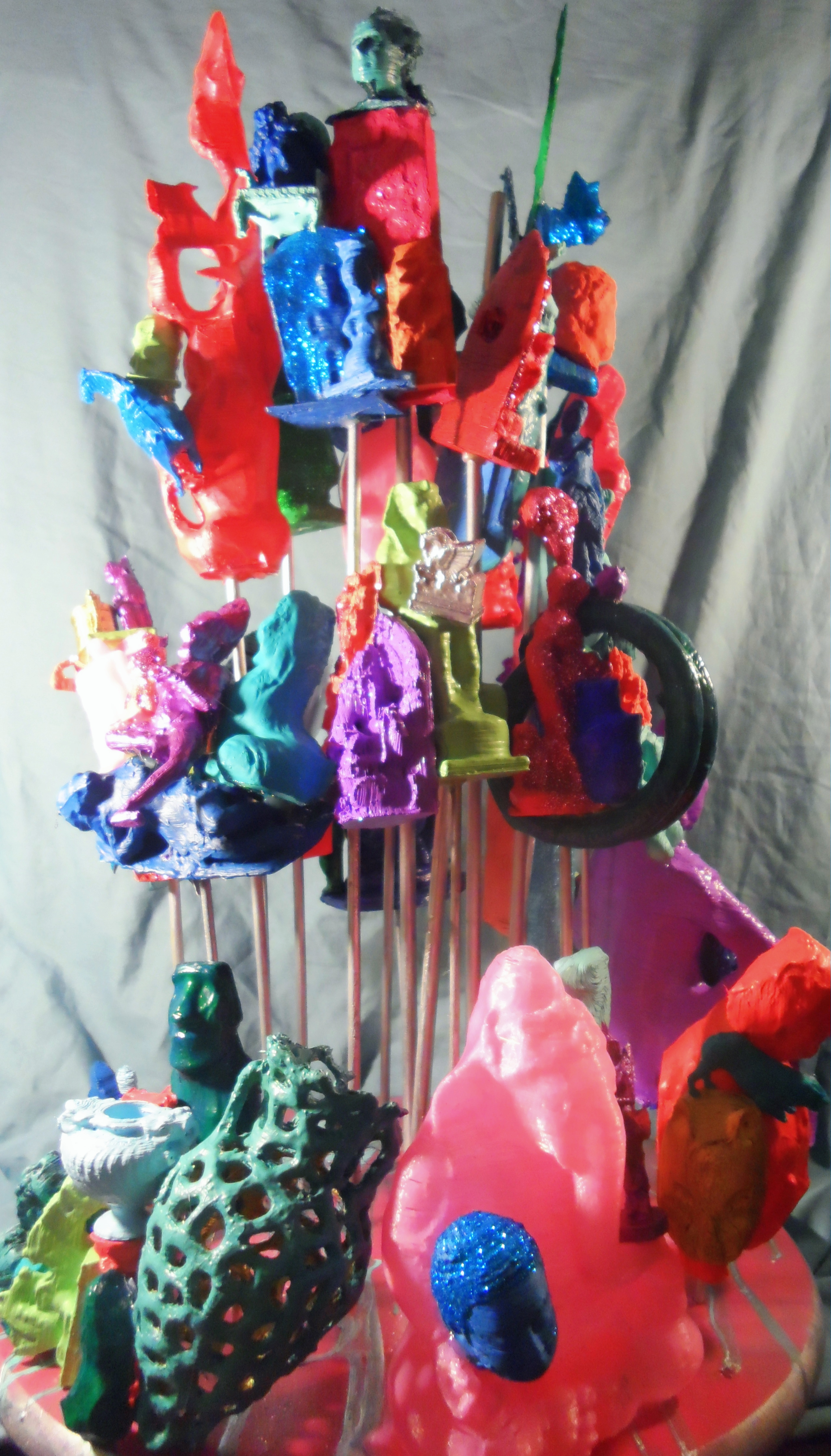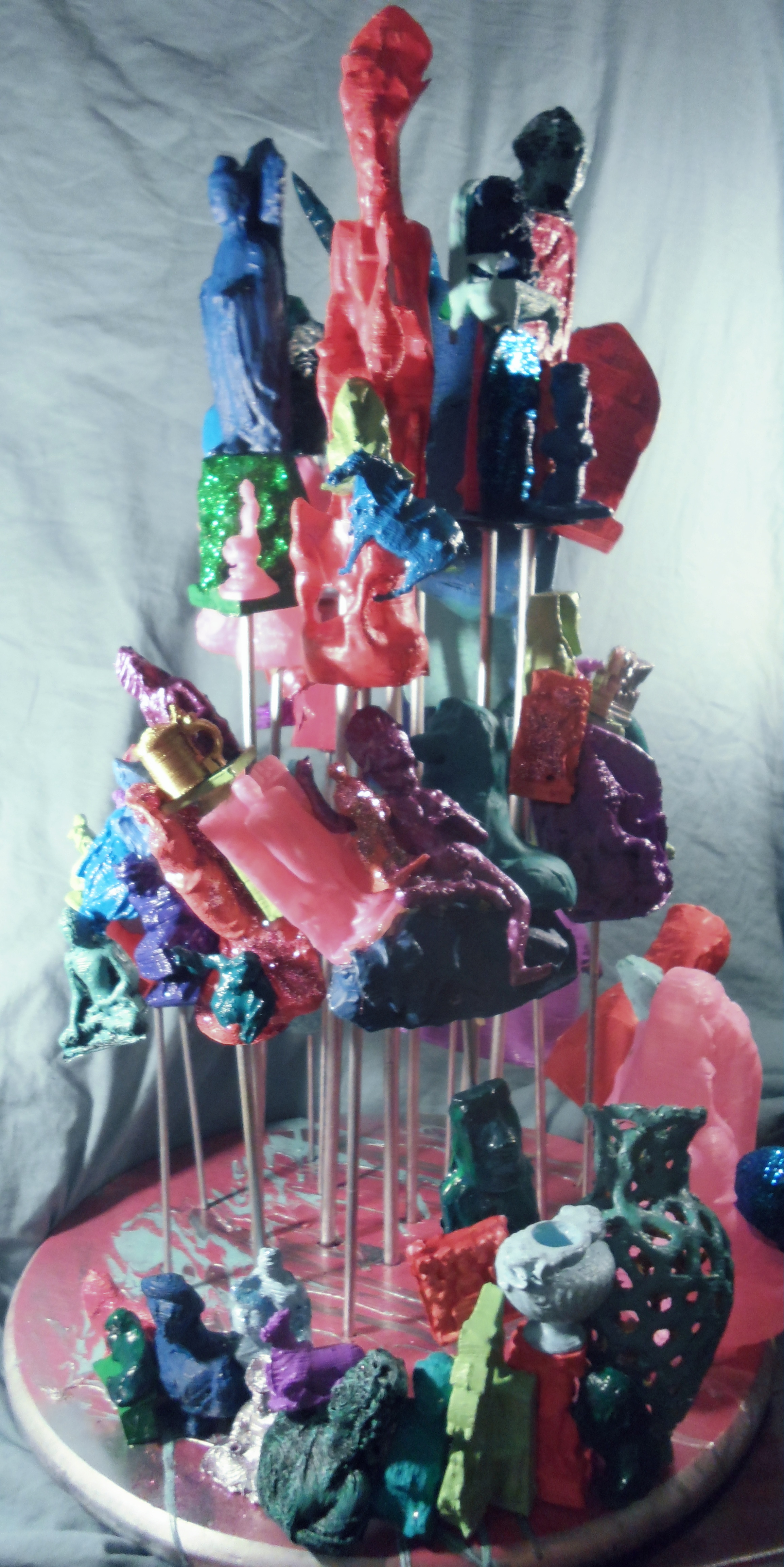 This sculpture is a color-coded collection of those 148 usable 3D printable digital models that have been uploaded as creative commons materials to these databases directly by museums, with appropriate meta-data about the original artifact attached.